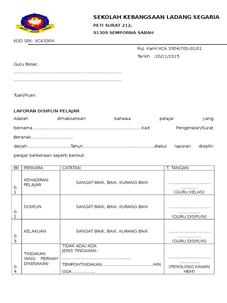 Contoh surat masalah disiplin hukuman rotan. Laporan lawatan ke pameran buku karangan contoh. N ama pelajar yang melanggar disiplin 2.
